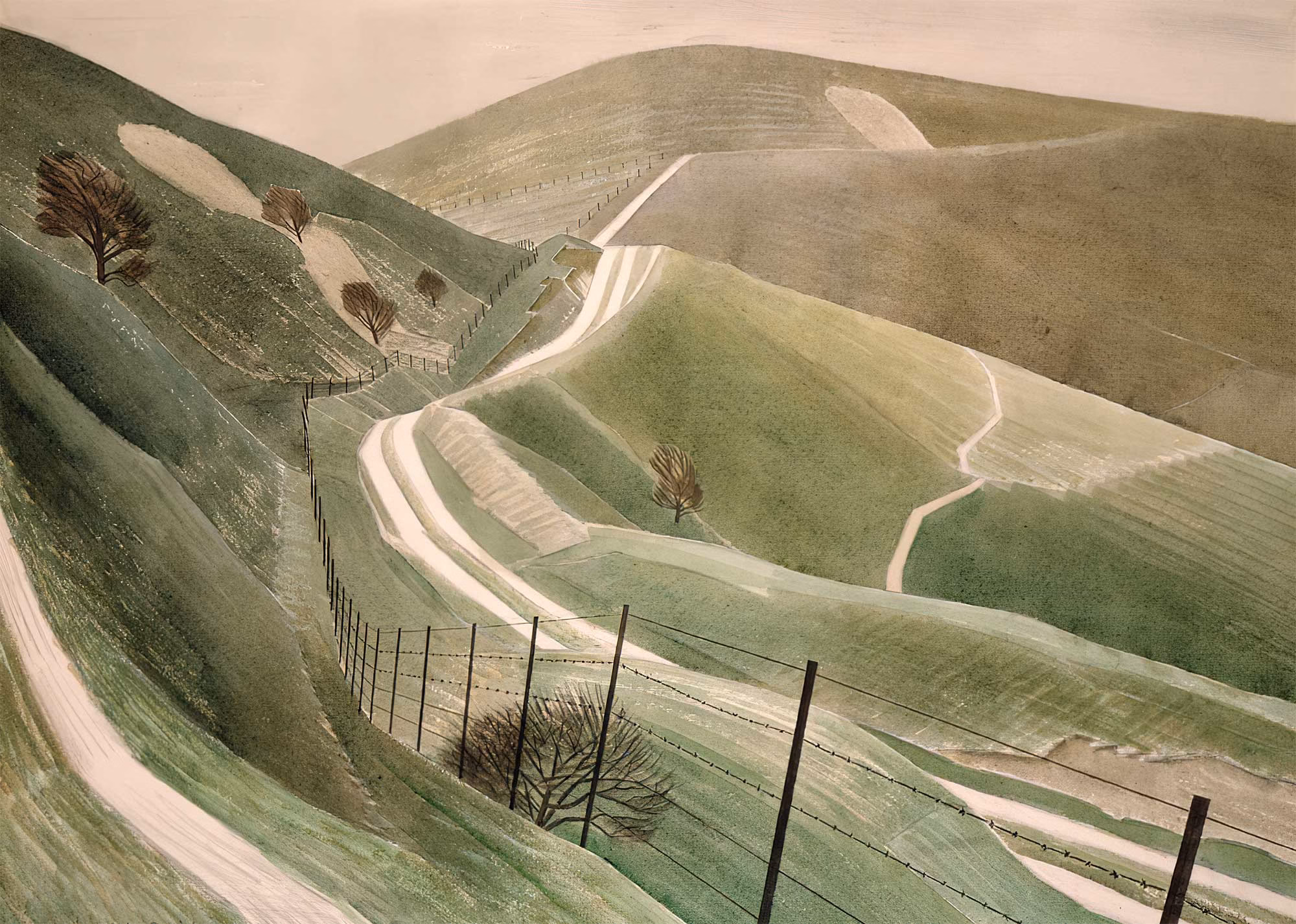 Eric Ravilious Prints: ‘Chalk Paths’, watercolour on paper, 1935.