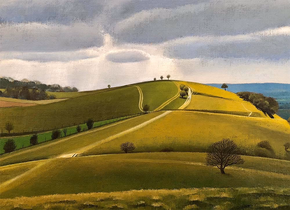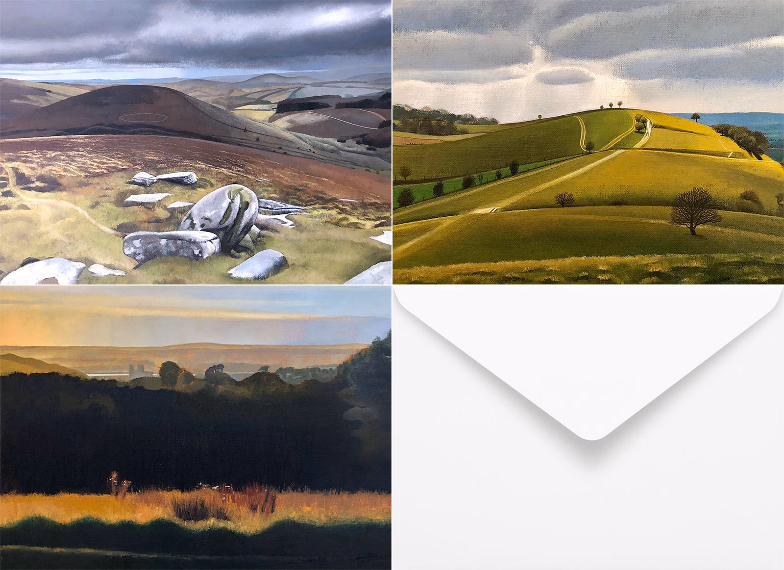 Introducing the Tim Woodcock-Jones Landscape Collection (No. 2), comprising Pitstone Hill, Caernarfon Castle, and Dartmoor.